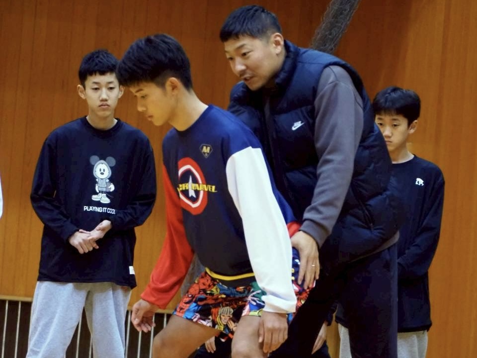 体の使い方やハンドリングの基礎練習を行った後、実戦を意識したディフェンスドリルに取り組みました。