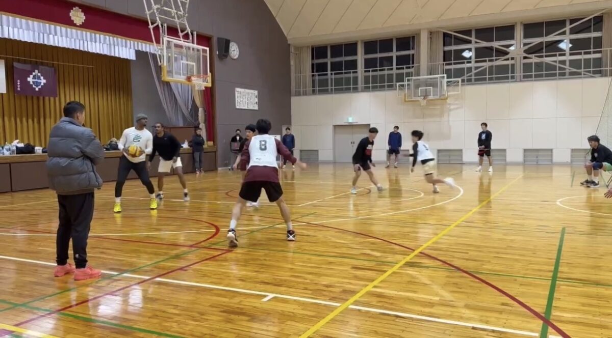 スクールではシュートフォームの修正の仕方とピックアンドロールの駆け引きのドリルを行いました。