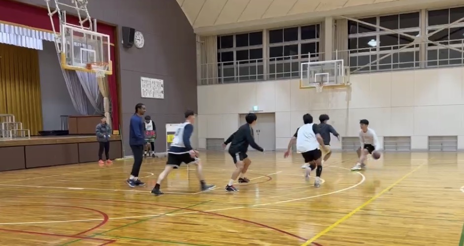 スクールではディフェンスをみてアタックする判断の練習とフィニッシュスキルをメインに練習しました。