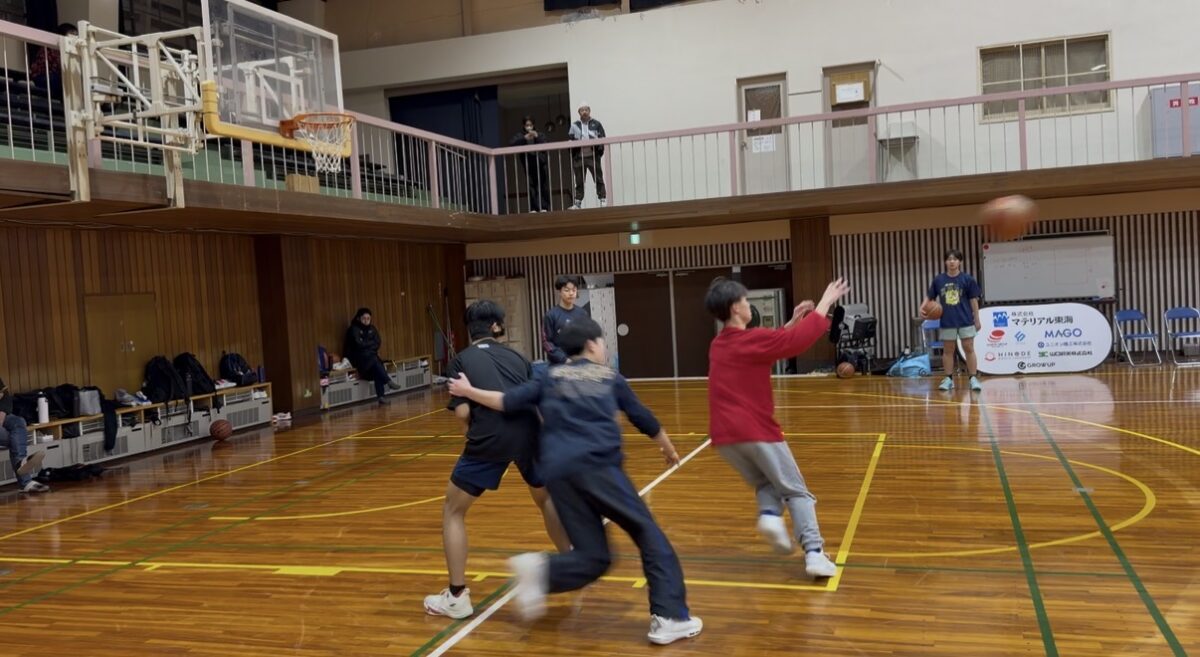 パススキルからスタートし、ハンドリングスキル、フィニッシュスキルへと繋げ、その後ダウンスクリーンの判断練習を行い、最後は4on4でのドライブに対する合わせの練習を行いました。