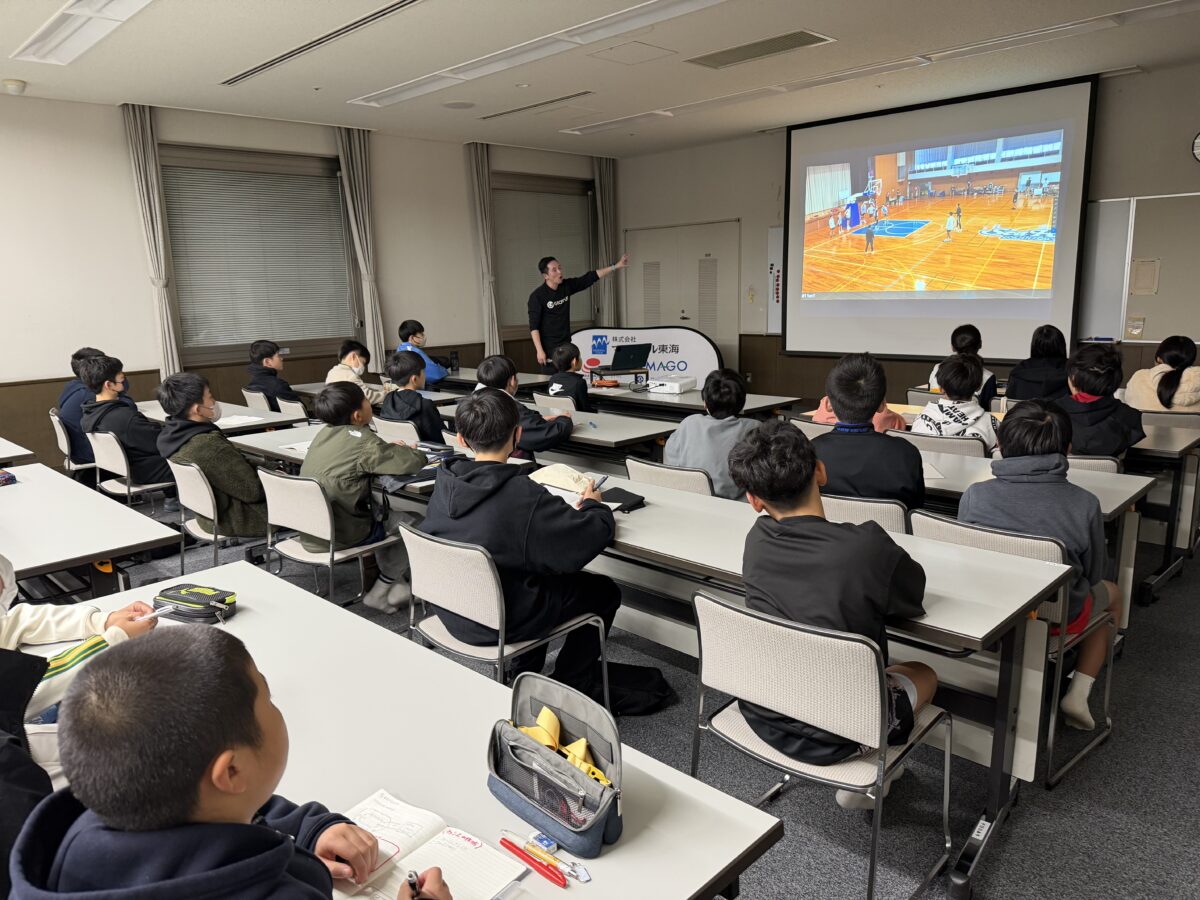 バスケットボールの戦術や考え方について、プロのコーチから直接ご指導いただき、選手たちにとって非常に貴重な時間となりました。